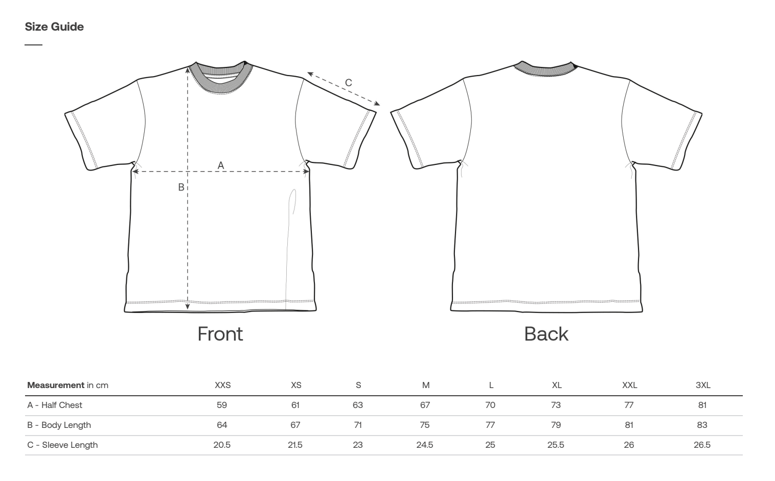 Noorte ja täiskasvanute t-särgi mõõdud: